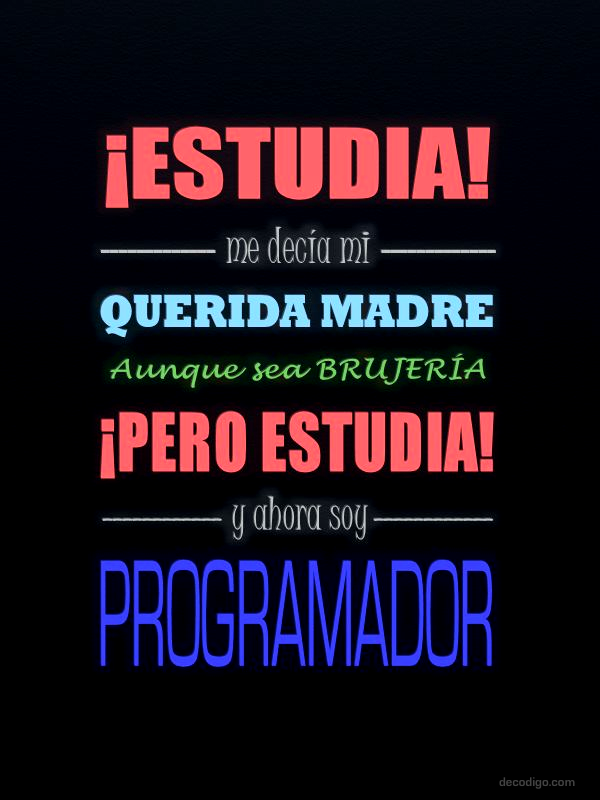 Ahora me ha explica mi madre que antes estudiar era brujería, ser programador… No es de Dios jeje